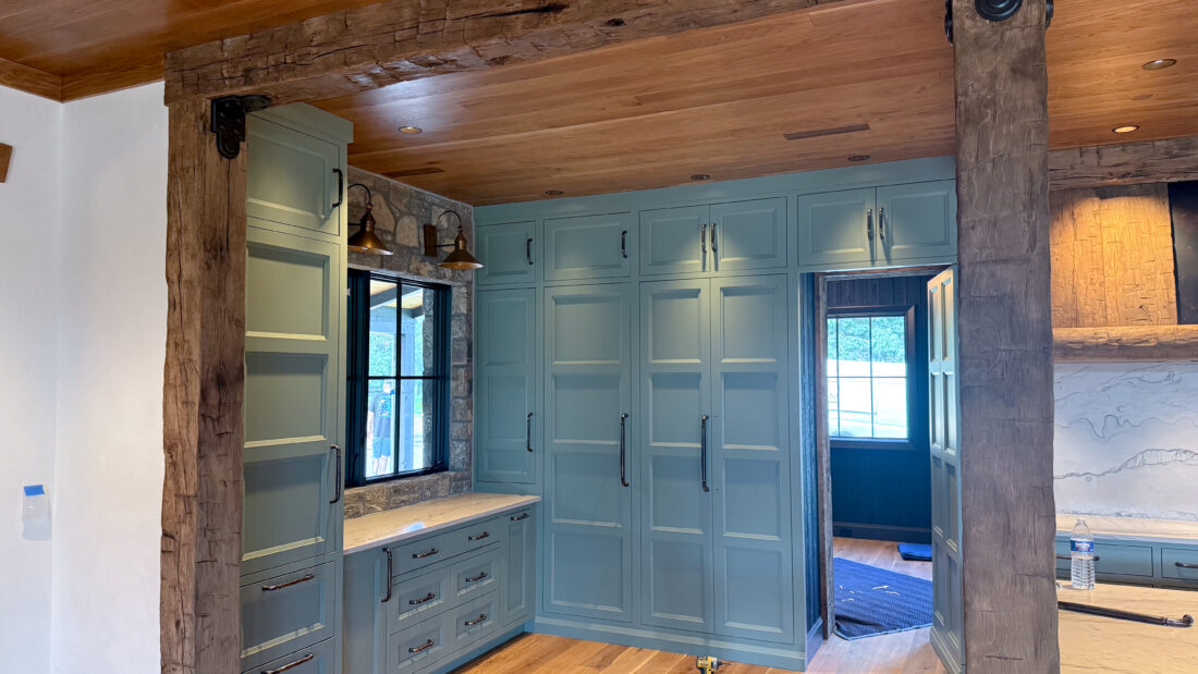 This custom cabinet installation features fluted wood fronts and brass pulls. The vertical texture adds warmth and character to the room. It’s a bold look that still feels classic. This design is built to stand out—and to last.