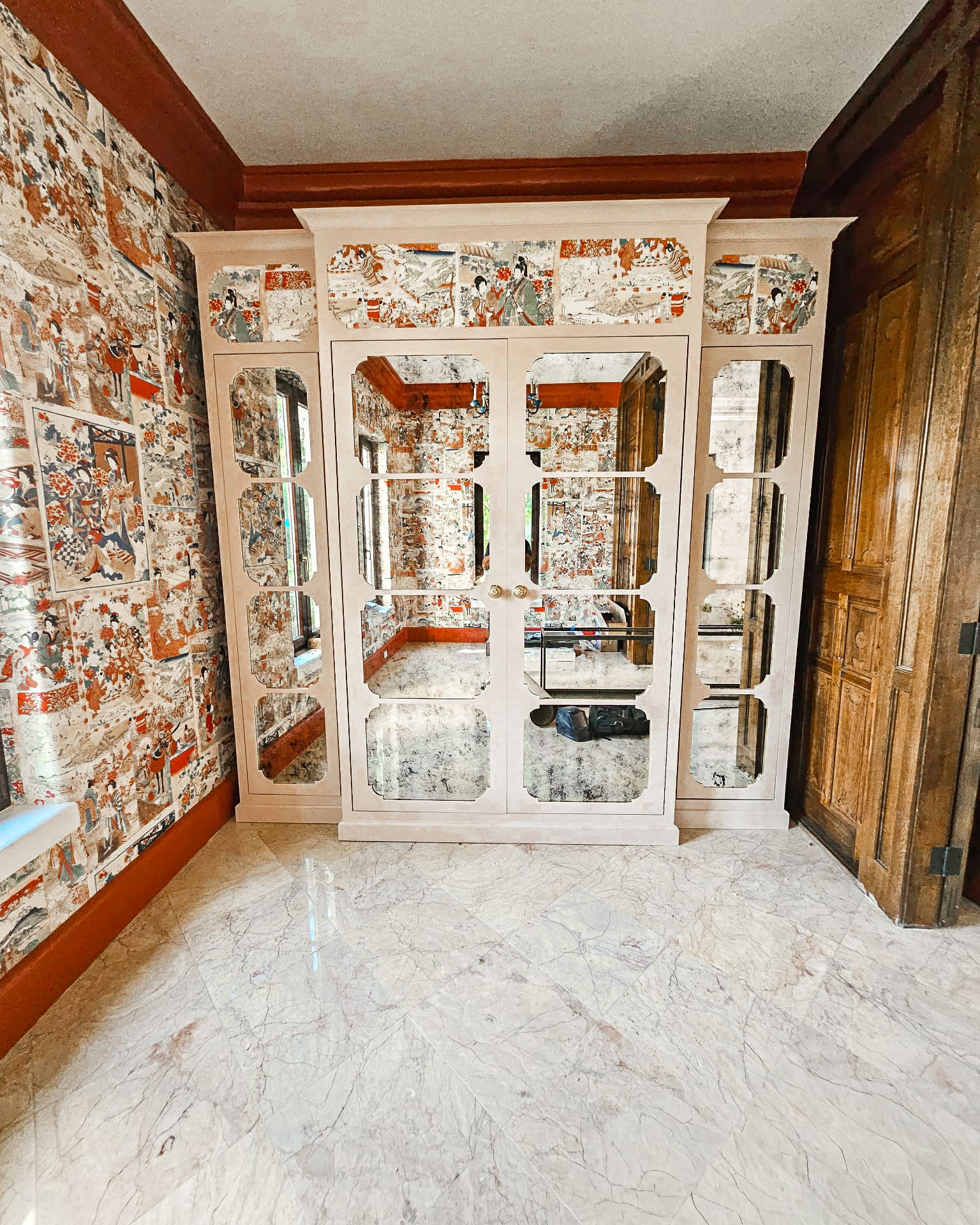 Custom Mirrored Cabinet with Antique Glass Panels - MDM Design Studio